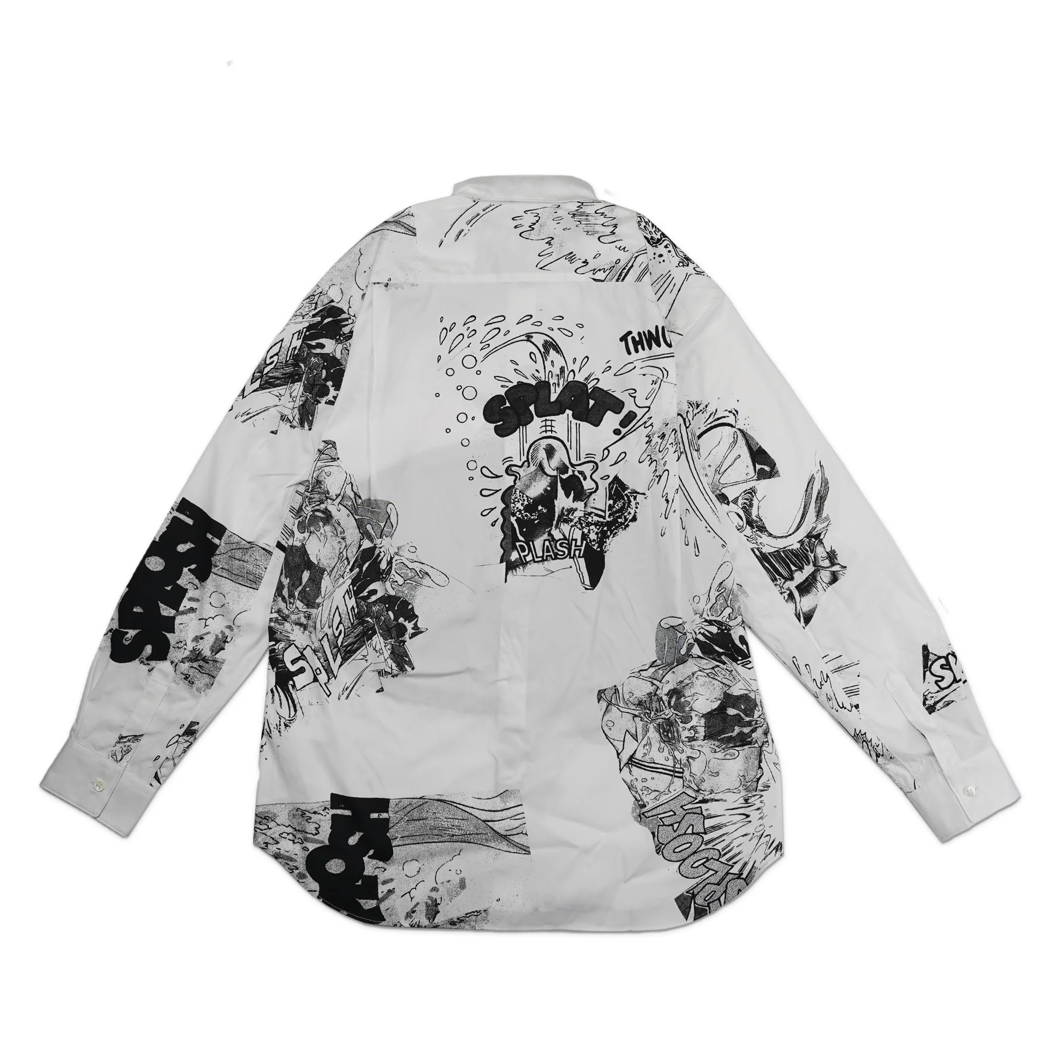The Comme des Garçons SHIRT artist series is back for SS22 - featuring Christian Marclay whose work explores connection between sound, noise, photography, video, and film. The poplin button-down shirt is made from a cotton construction with all-over graphic prints across the shirt, contrasted by a large black circle at the front. Point collars with button fastening at the front and buttoned cuffs.Â