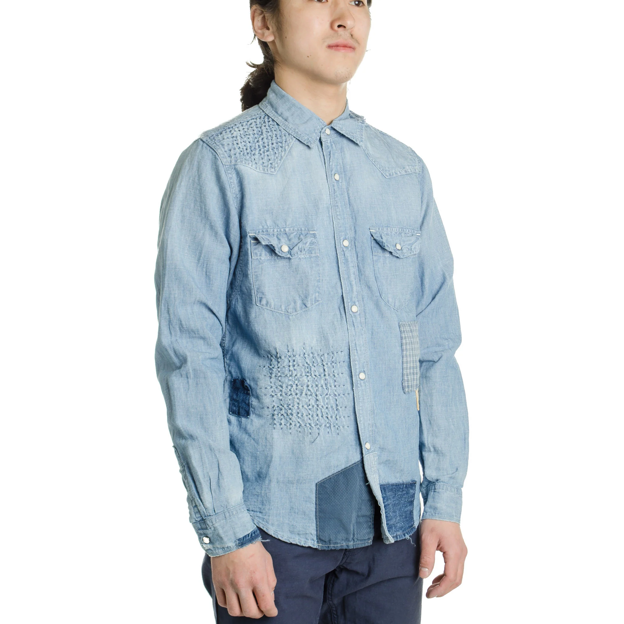 From top to bottom, the Denim Shirt 5 Year Wash features finely set needlework and indigo denim patchwork on top of 5 year process washed denim.Äà For easy access, the placket and chest pockets have snap stud buttons.Äà The shirt is a standard fit item and will change in texture and appearance over time.